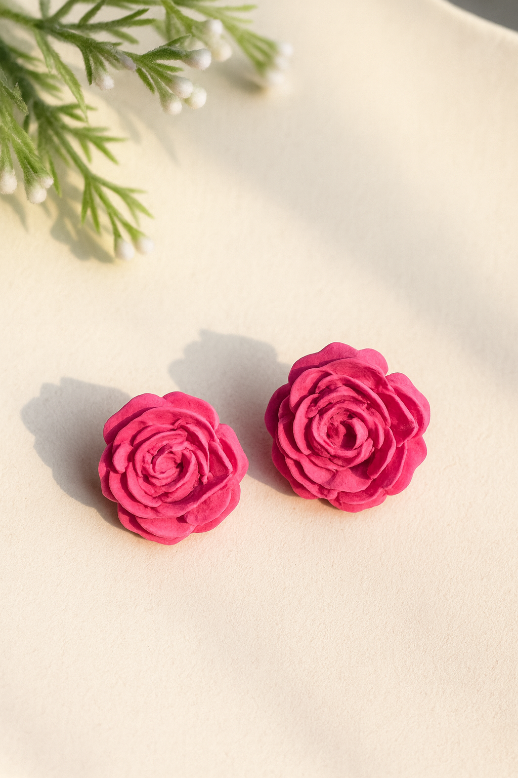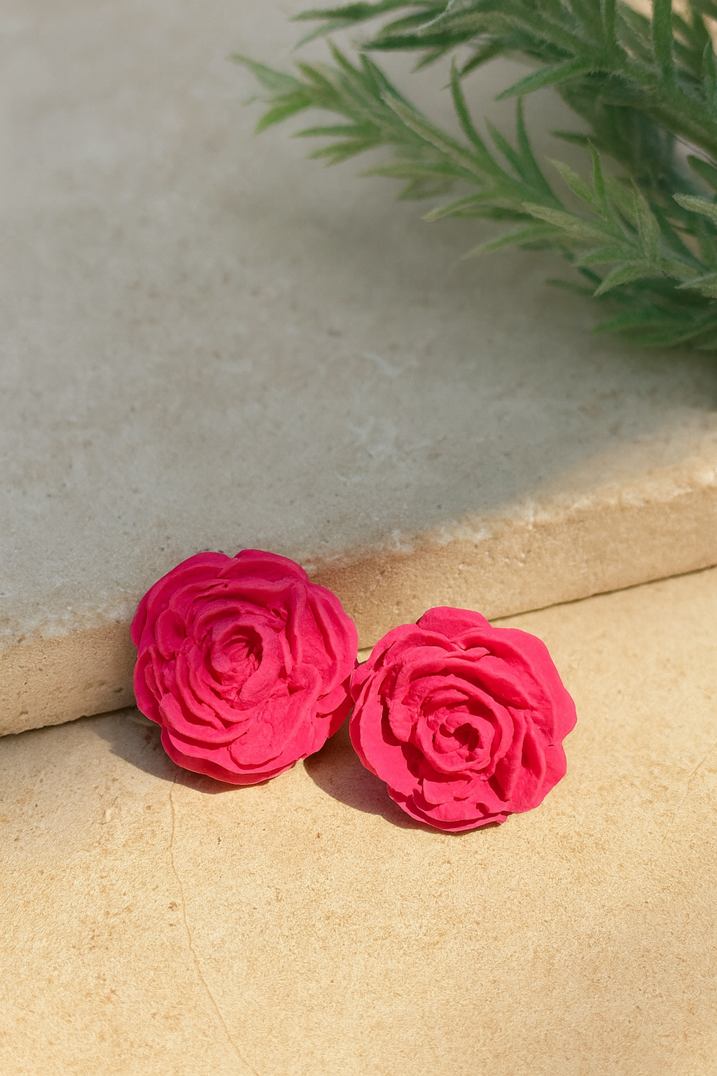 The Amélie Pink Earrings express femininity and vitality. Their vibrant pink tone captures the joy of small moments and the timeless grace of handcrafted beauty. Each petal is hand-sculpted from polymer clay, a lightweight, durable, and versatile material that allows for natural textures, realistic forms, and vivid colors.