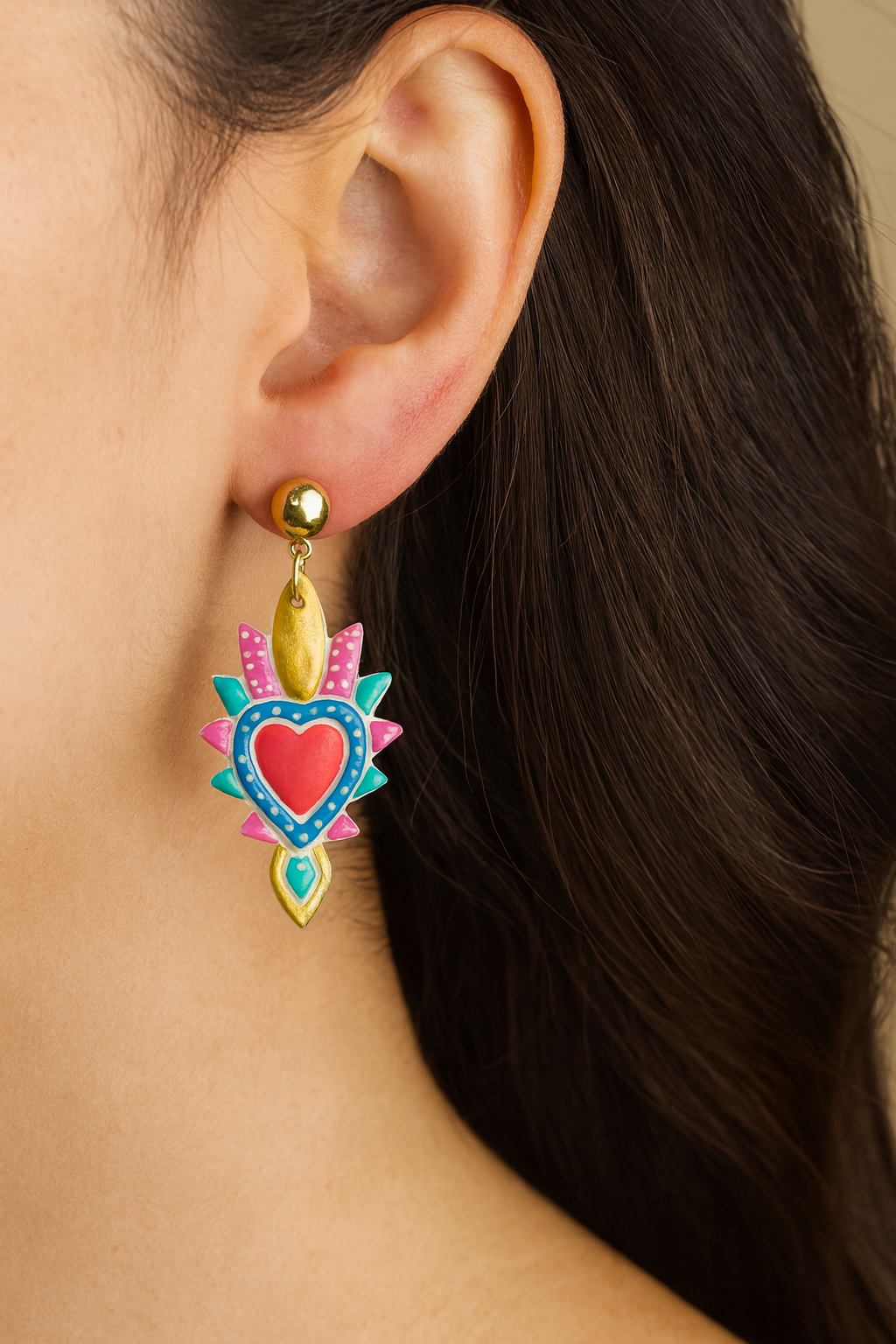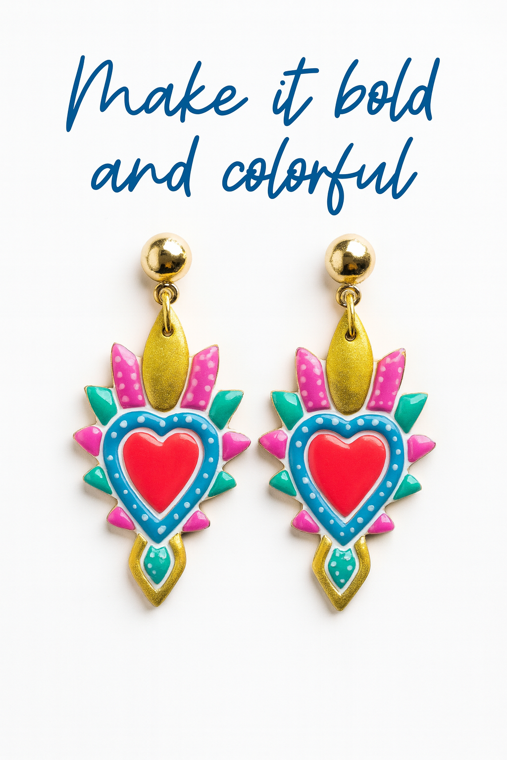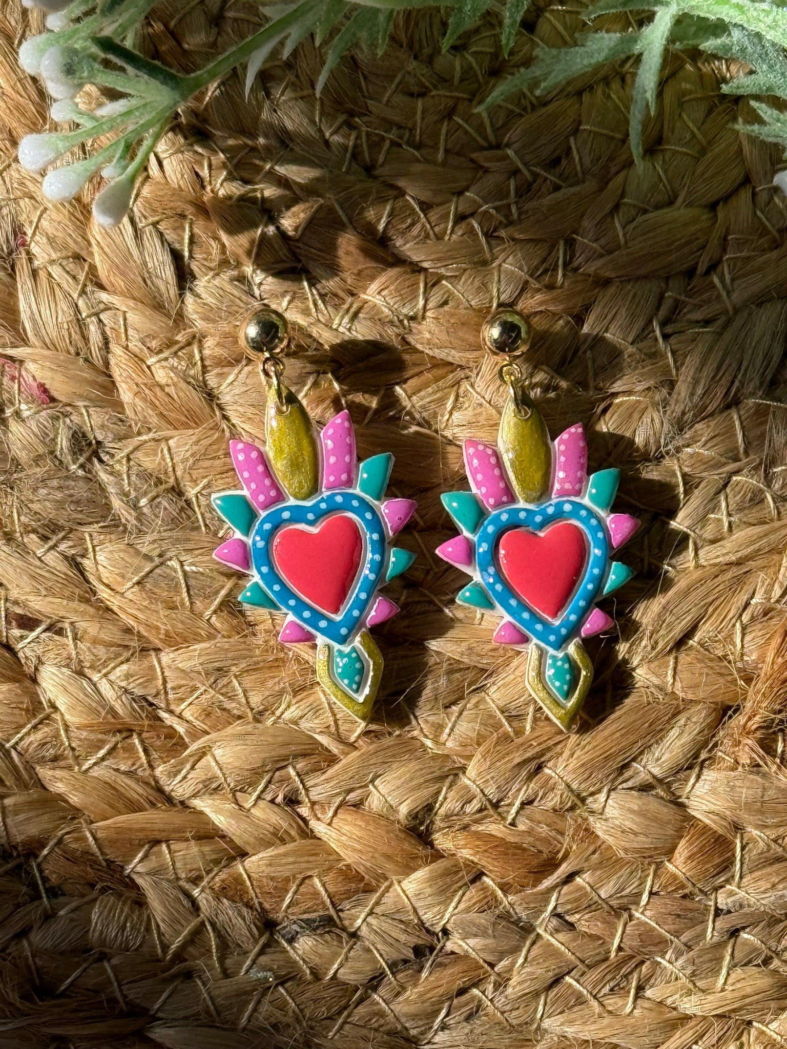 Polymer clay earrings, handmade and hand painted, resin coating, surgical steel, hypoallergenic.