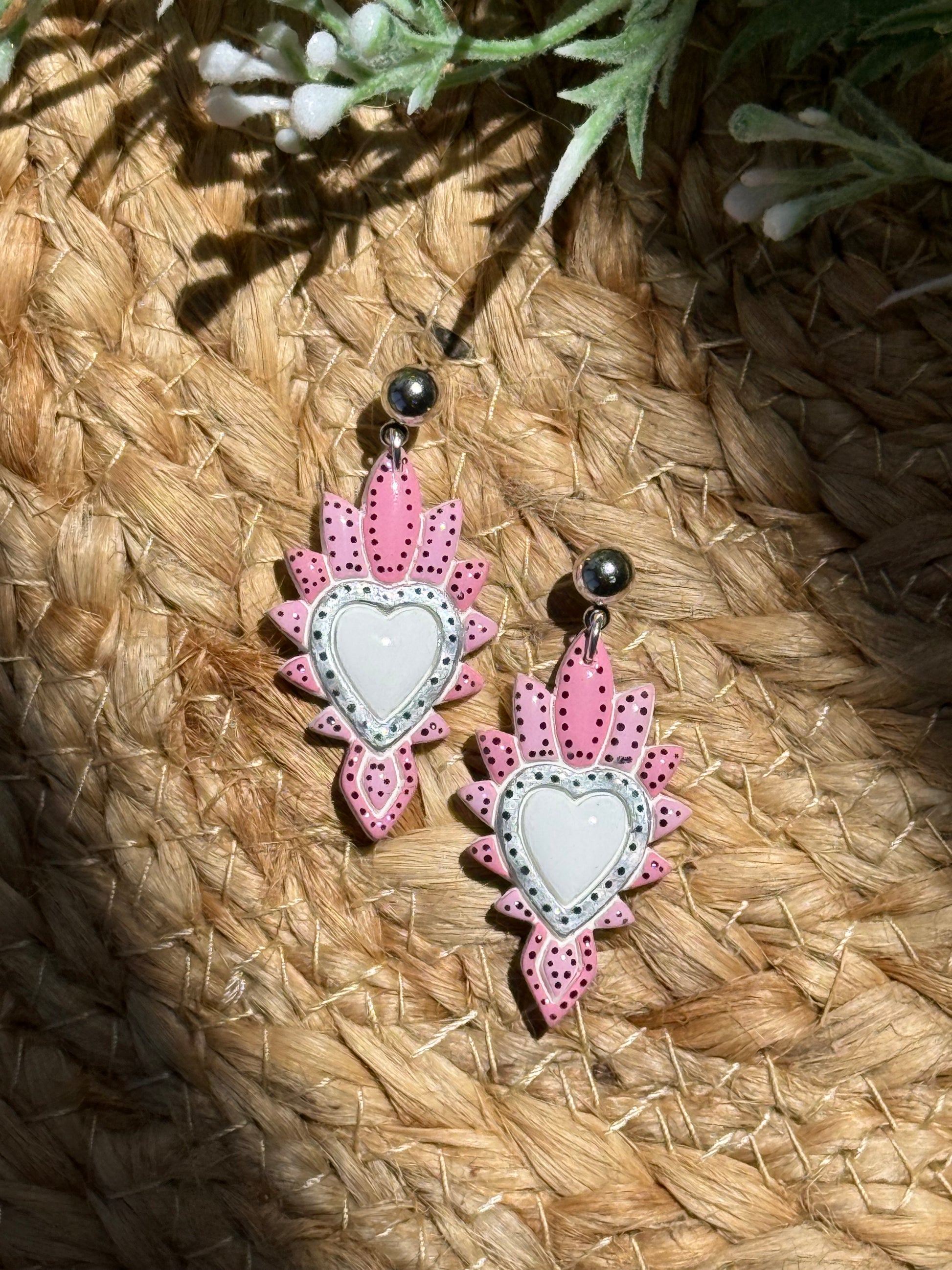 Polymer clay earrings, handmade and hand painted, resin coating, surgical steel, hypoallergenic.