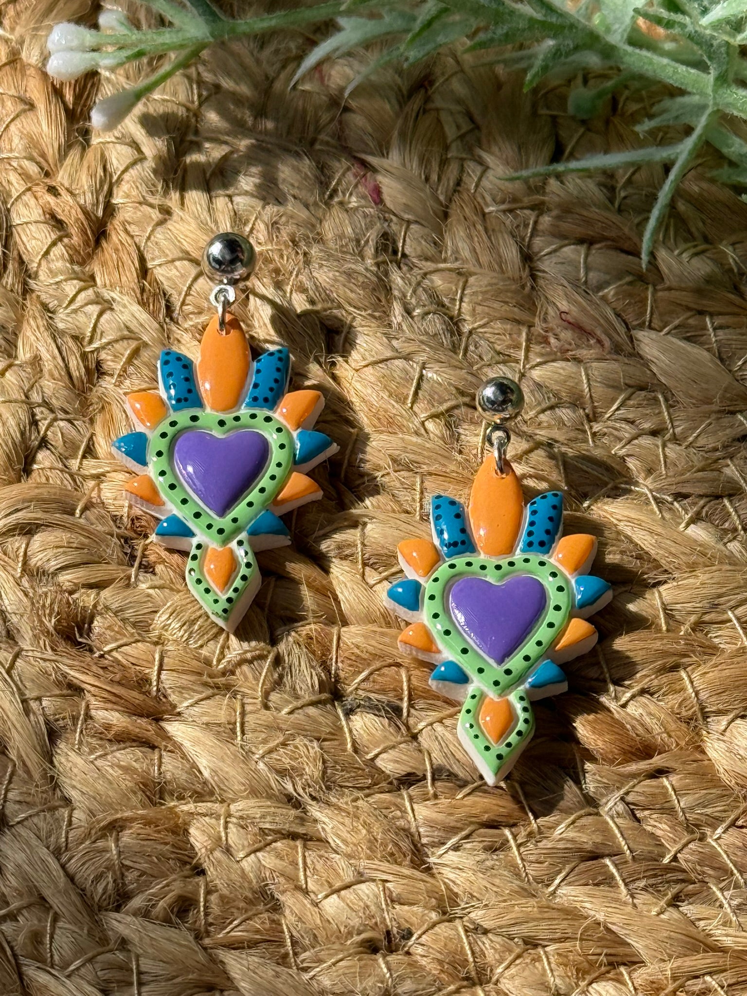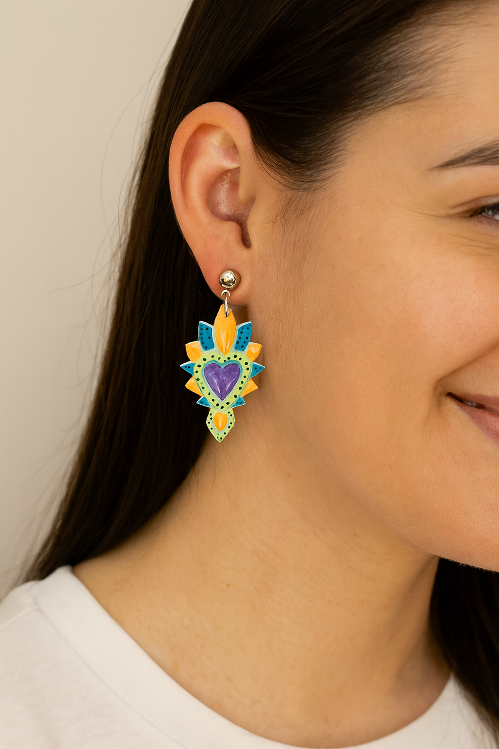 Polymer clay earrings, handmade and hand painted, resin coating, surgical steel, hypoallergenic.