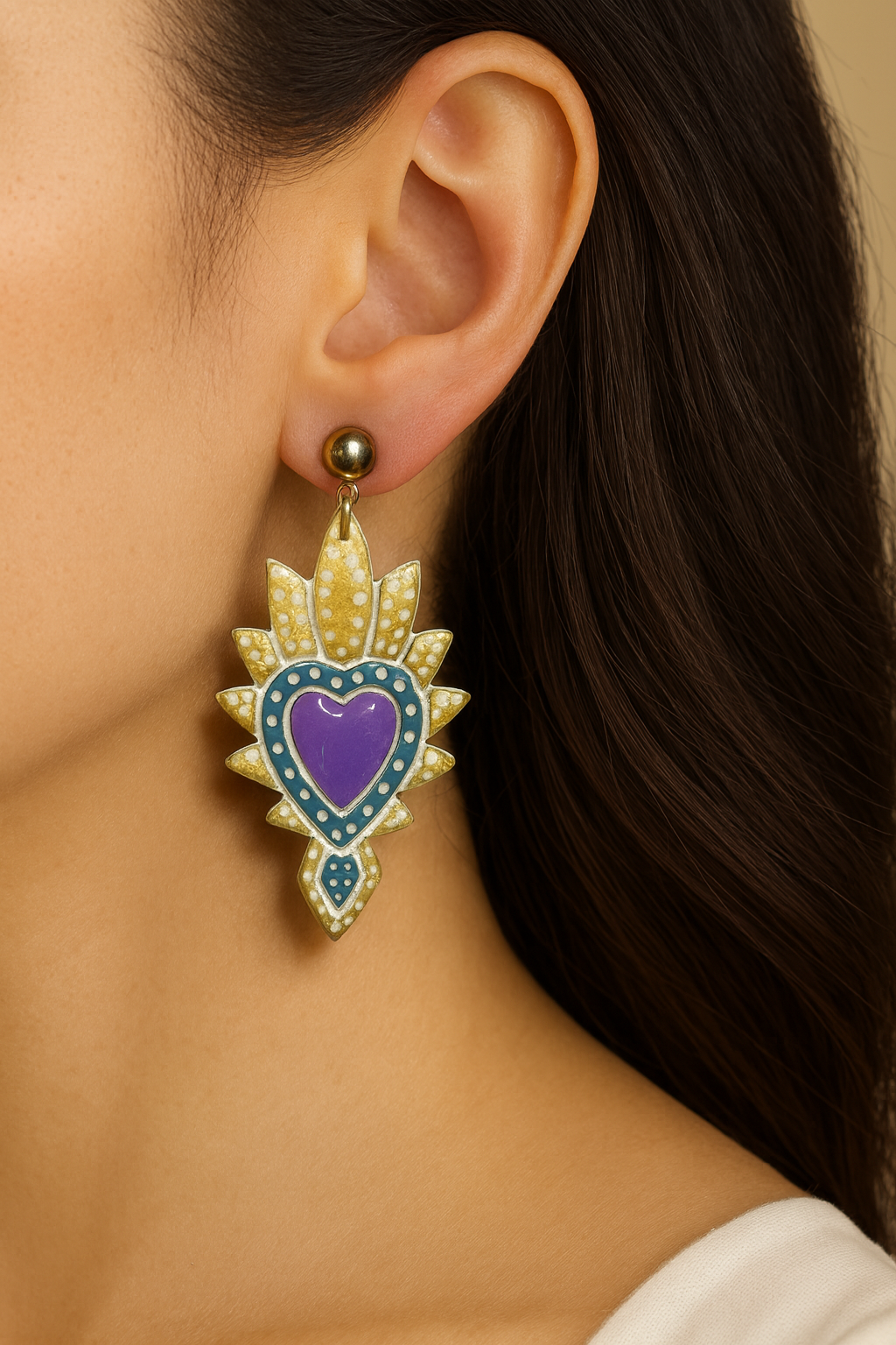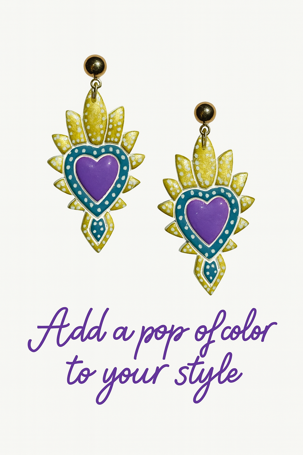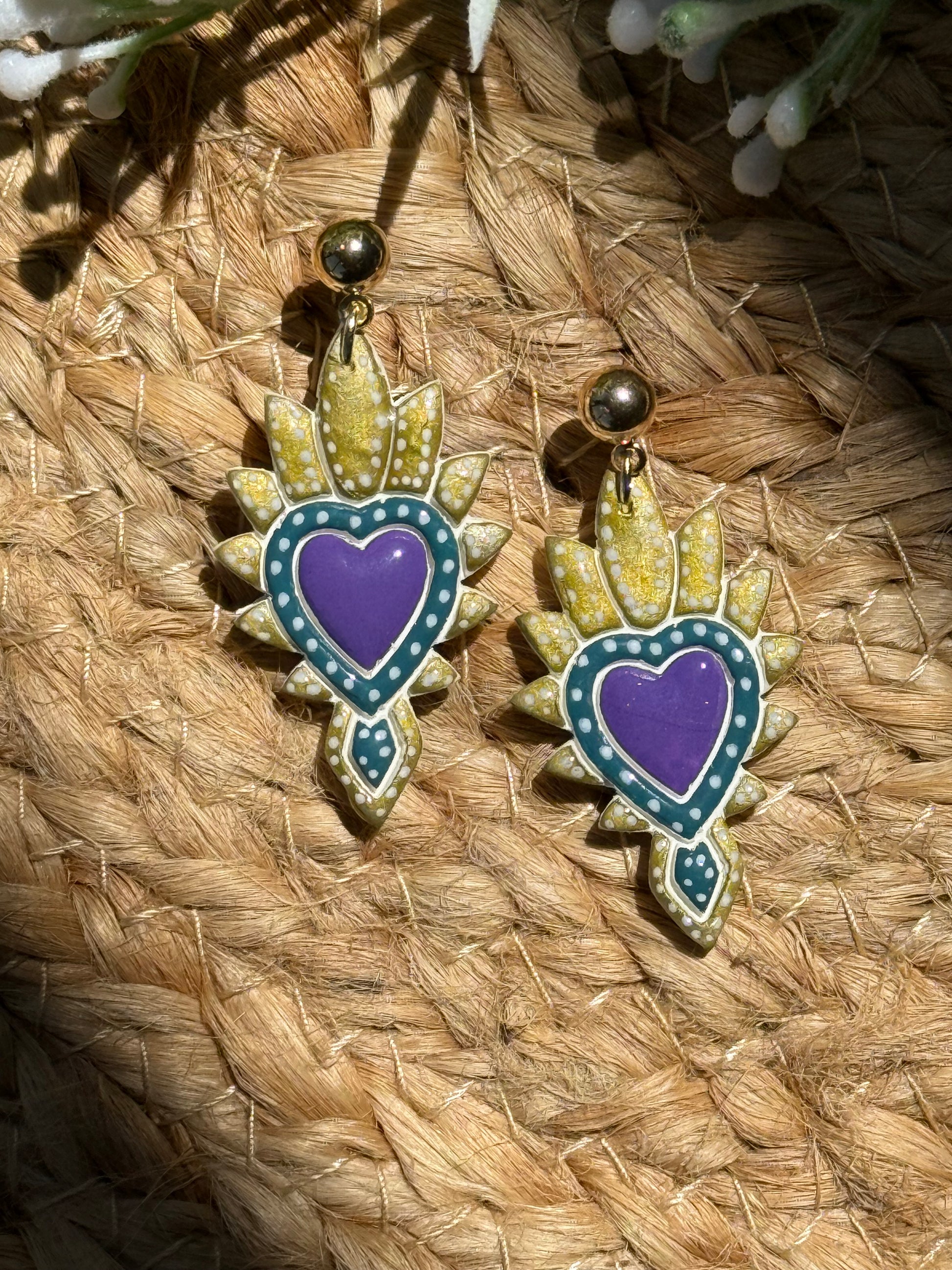 Polymer clay earrings, handmade and hand painted, resin coating, surgical steel, hypoallergenic.