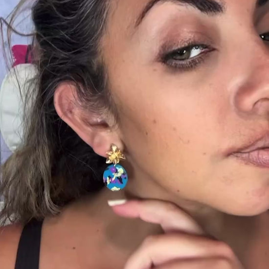 It’s also hypoallergenic, water-resistant, and long-lasting, keeping its shape and shine over time. The golden flower detail adds a touch of elegance and movement, making these earrings a perfect fusion of artistry, femininity, and modern style.