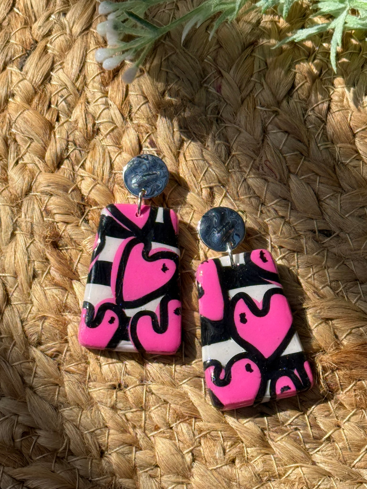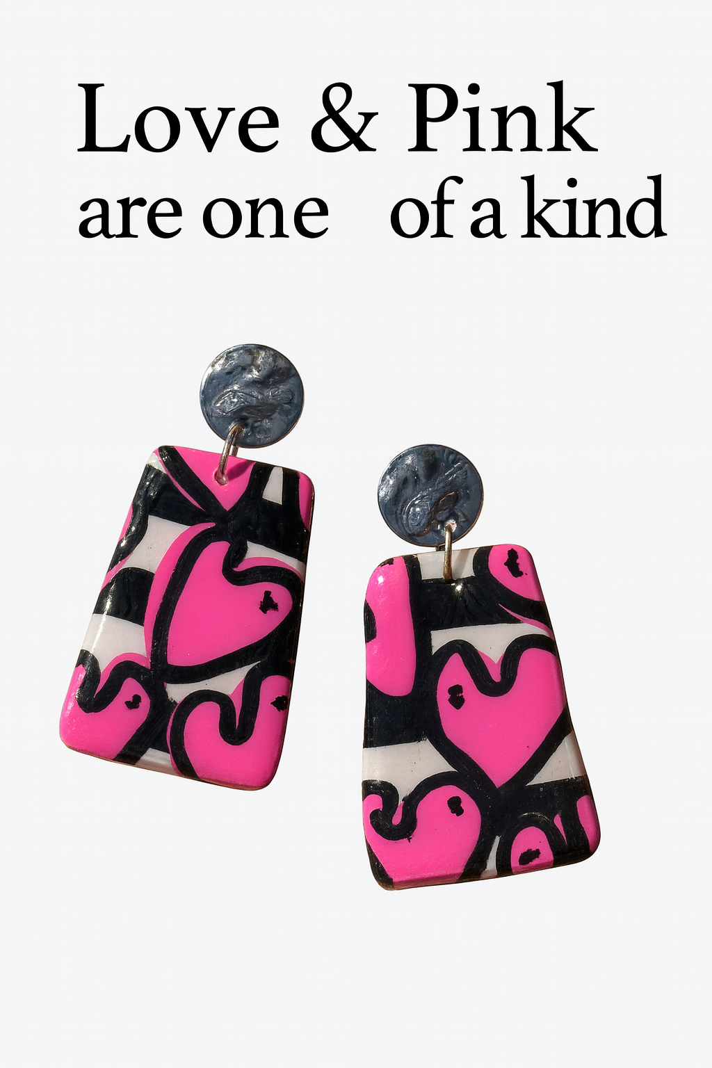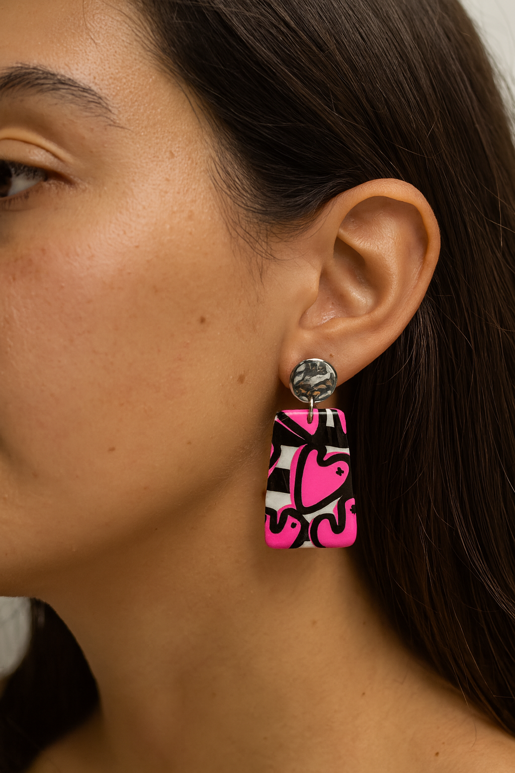 Polymer clay earrings, handmade, resin coating, surgical steel, hypoallergenic.