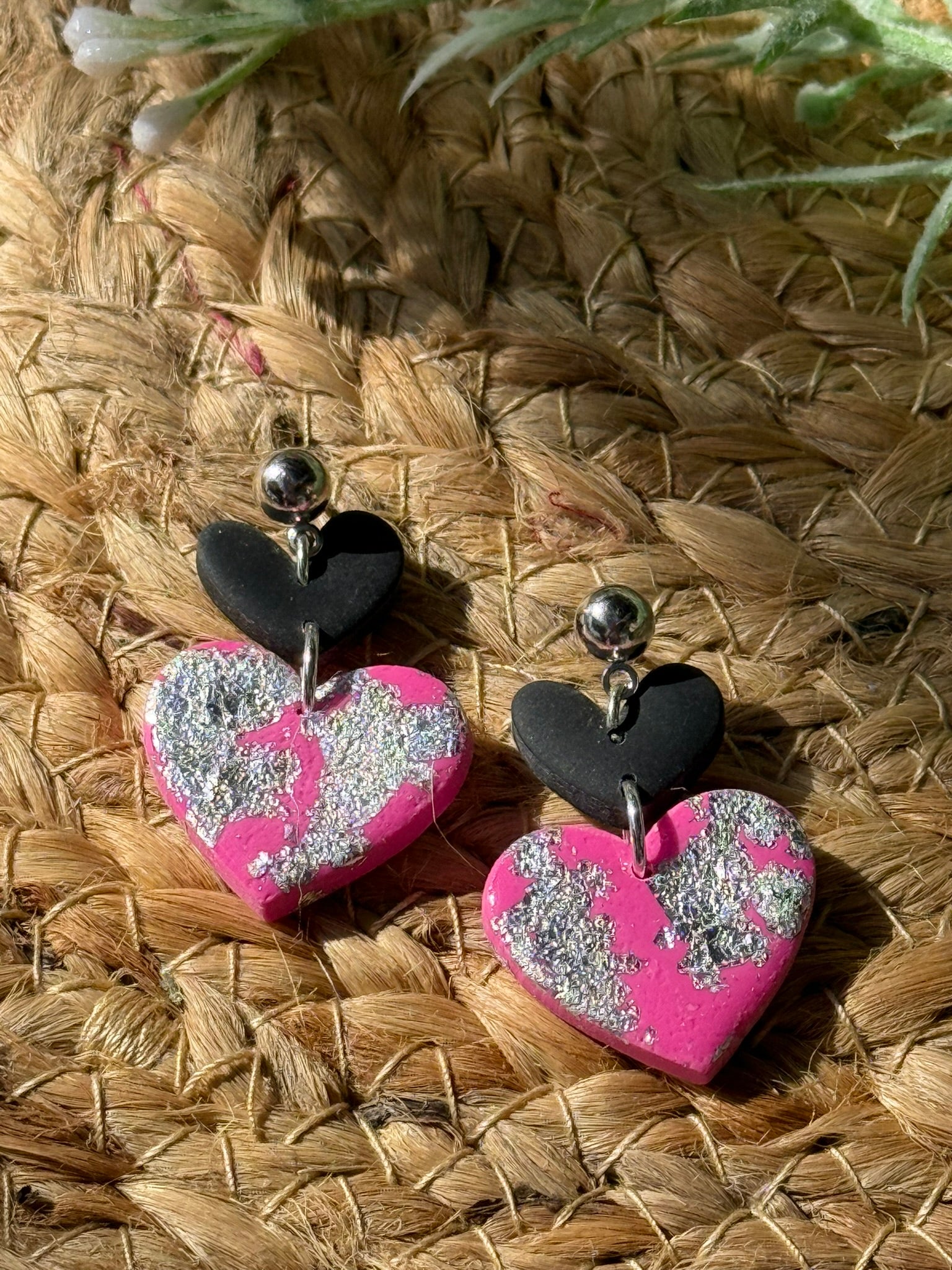Polymer clay earrings, handmade, resin coating, surgical steel, hypoallergenic.