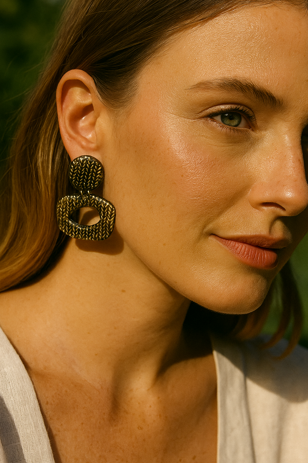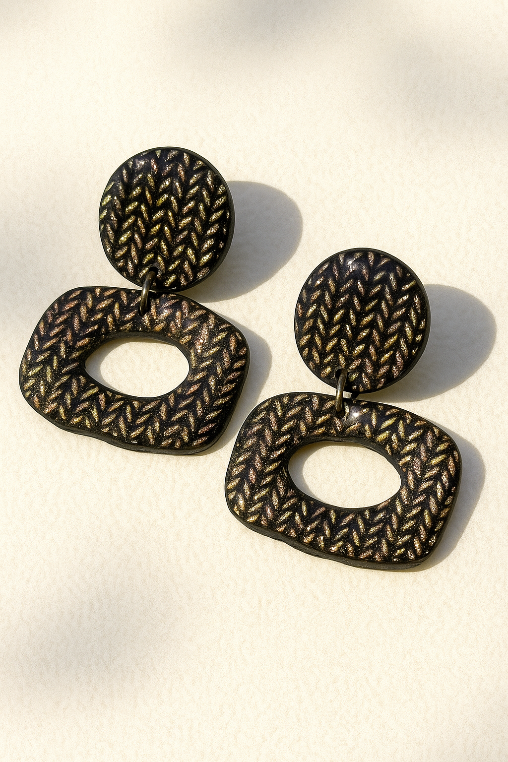 Handcrafted from high-quality polymer clay, these earrings are lightweight, durable, and comfortable, designed for effortless all-day wear. The versatility of polymer clay allows for rich textures and luminous metallic finishes, making every piece uniquely expressive and full of character.