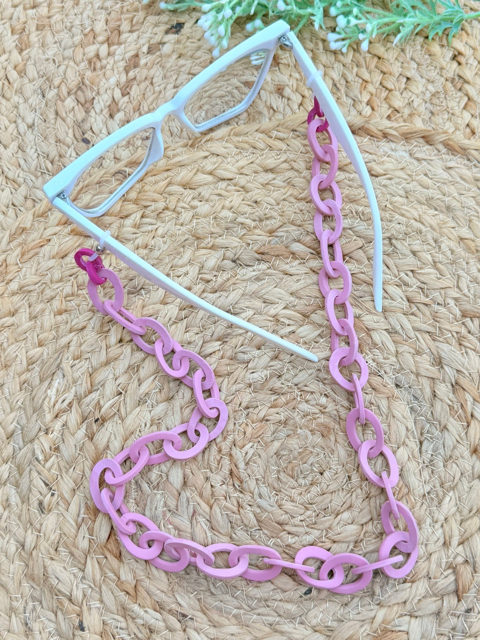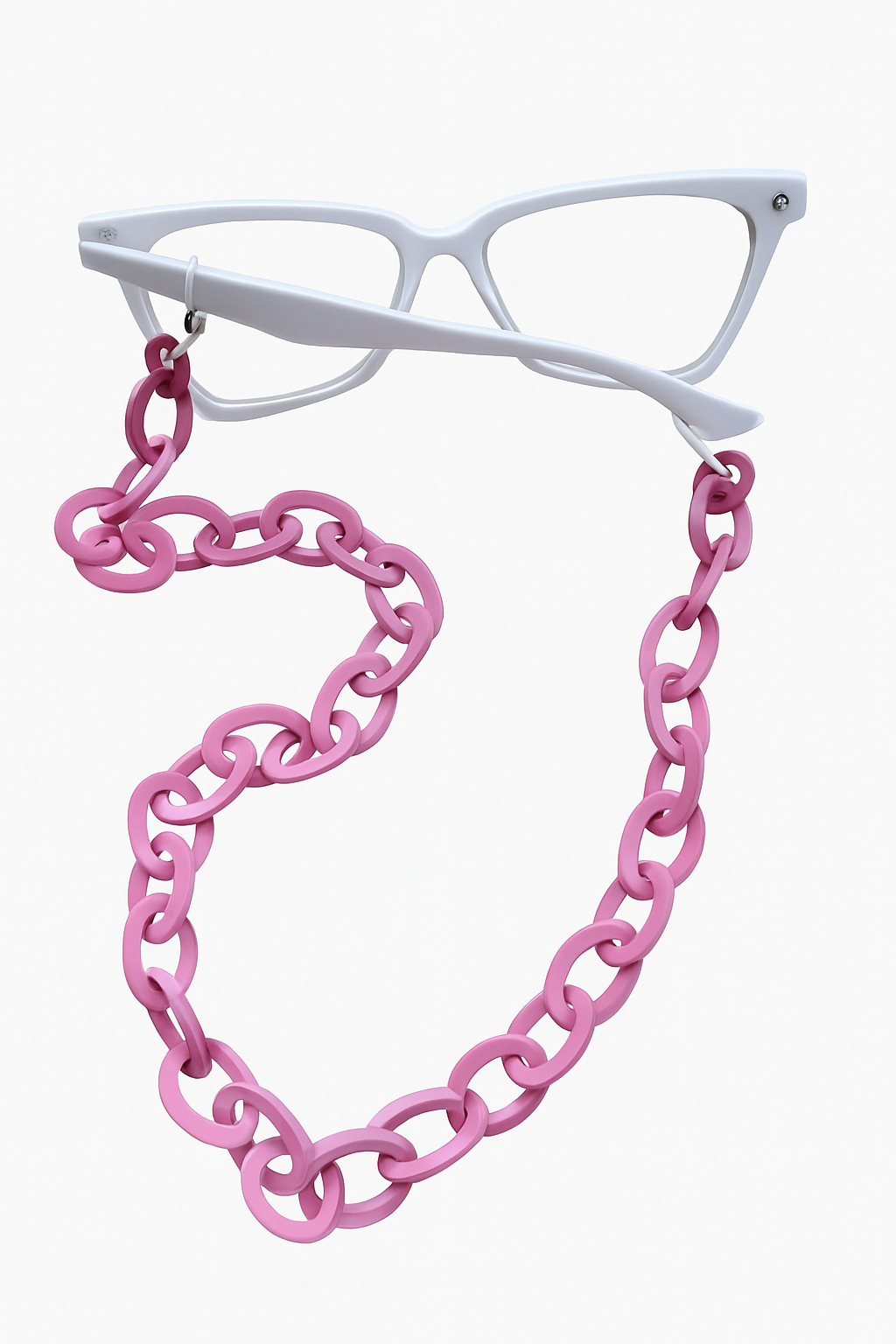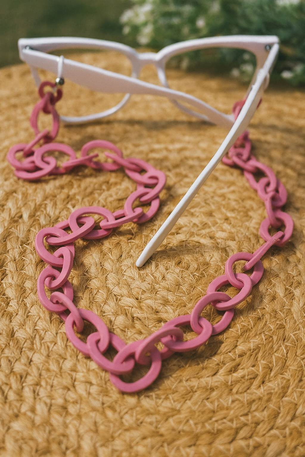 "Soft pink links full of charm, designed to keep your glasses close and your style closer"