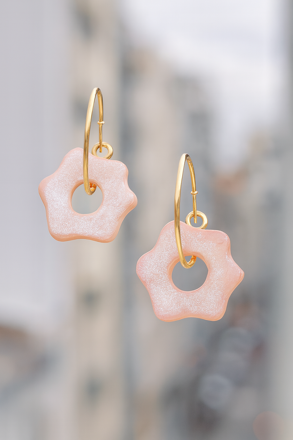 These earrings capture the delicacy of a pearly glow and the harmony of organic shapes. Each piece is carefully hand-sculpted from polymer clay, a lightweight, durable, and versatile material that allows for unique designs with smooth, luminous finishes.