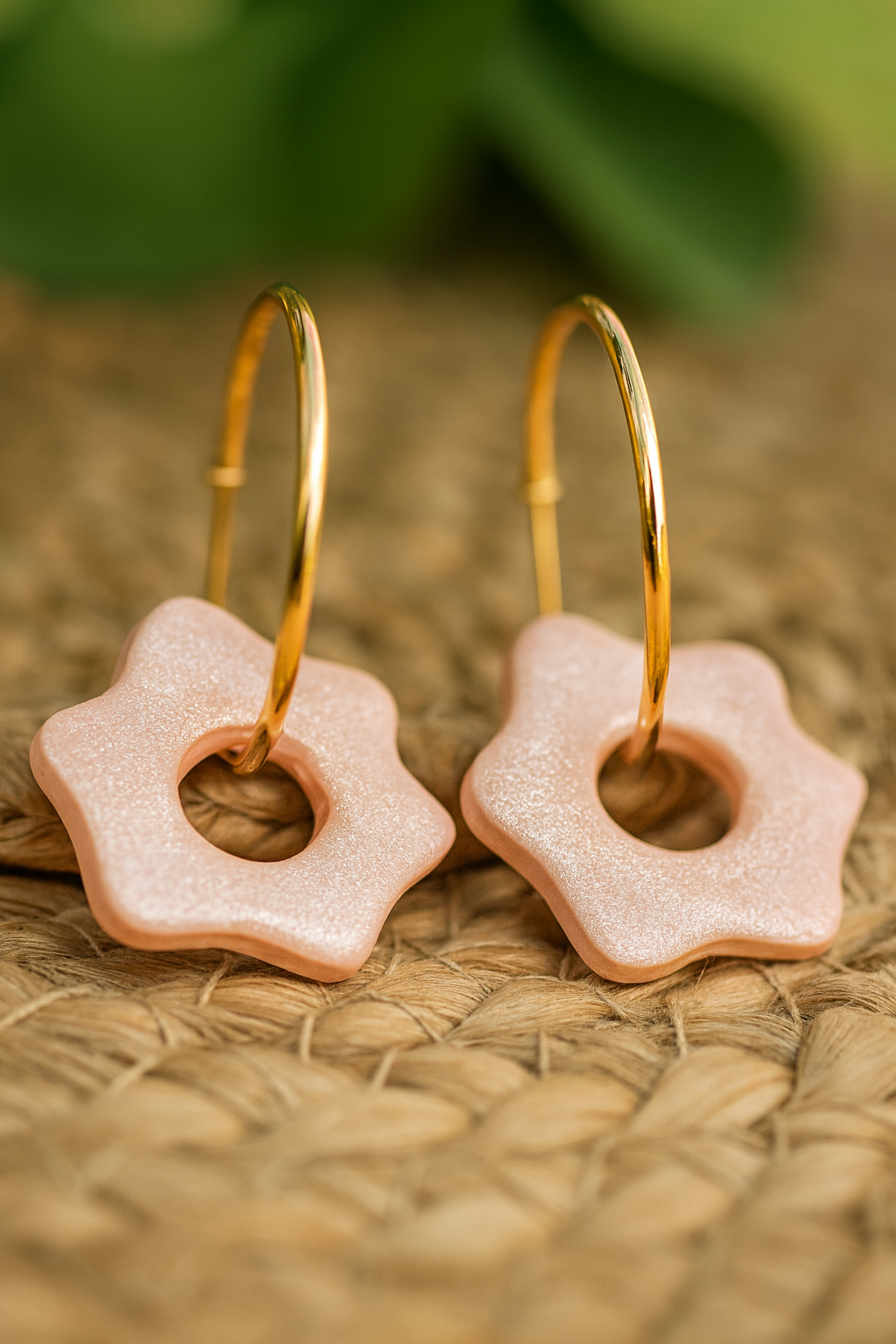 It’s also hypoallergenic, water-resistant, and long-lasting, keeping its shape and color over time. The blend of subtle texture and golden hoops makes them a modern, sophisticated accessory —perfect for elevating your style with a handmade touch.