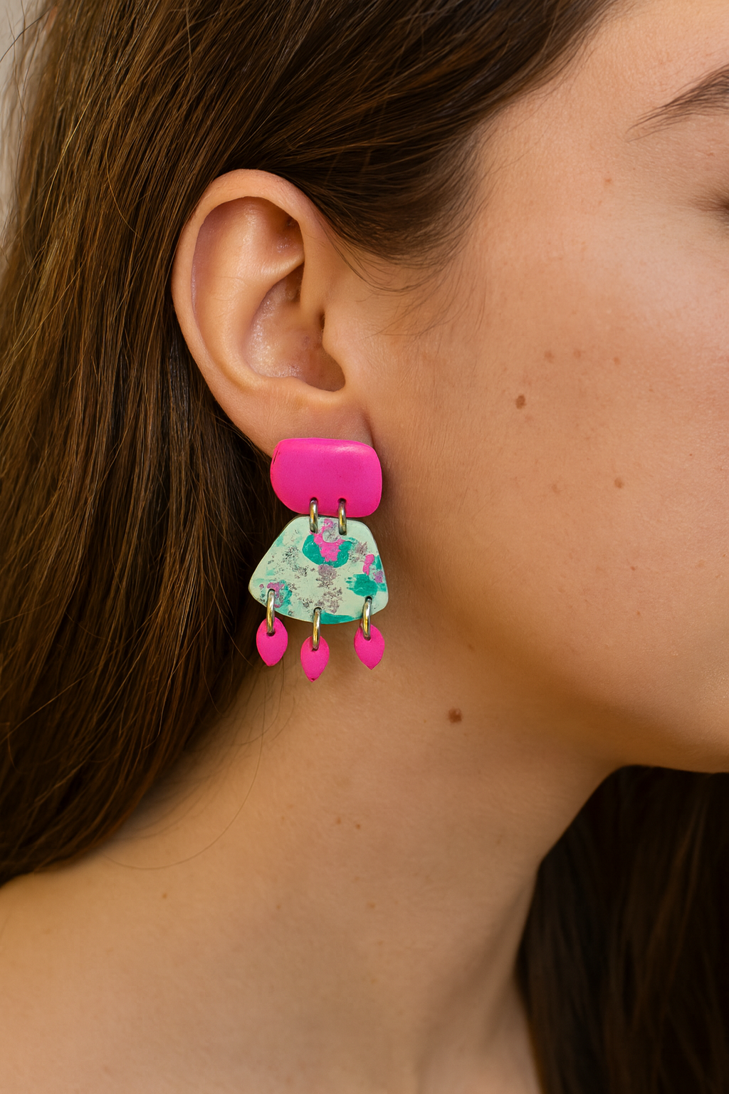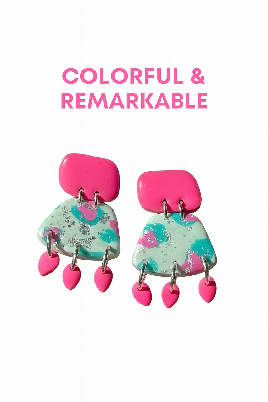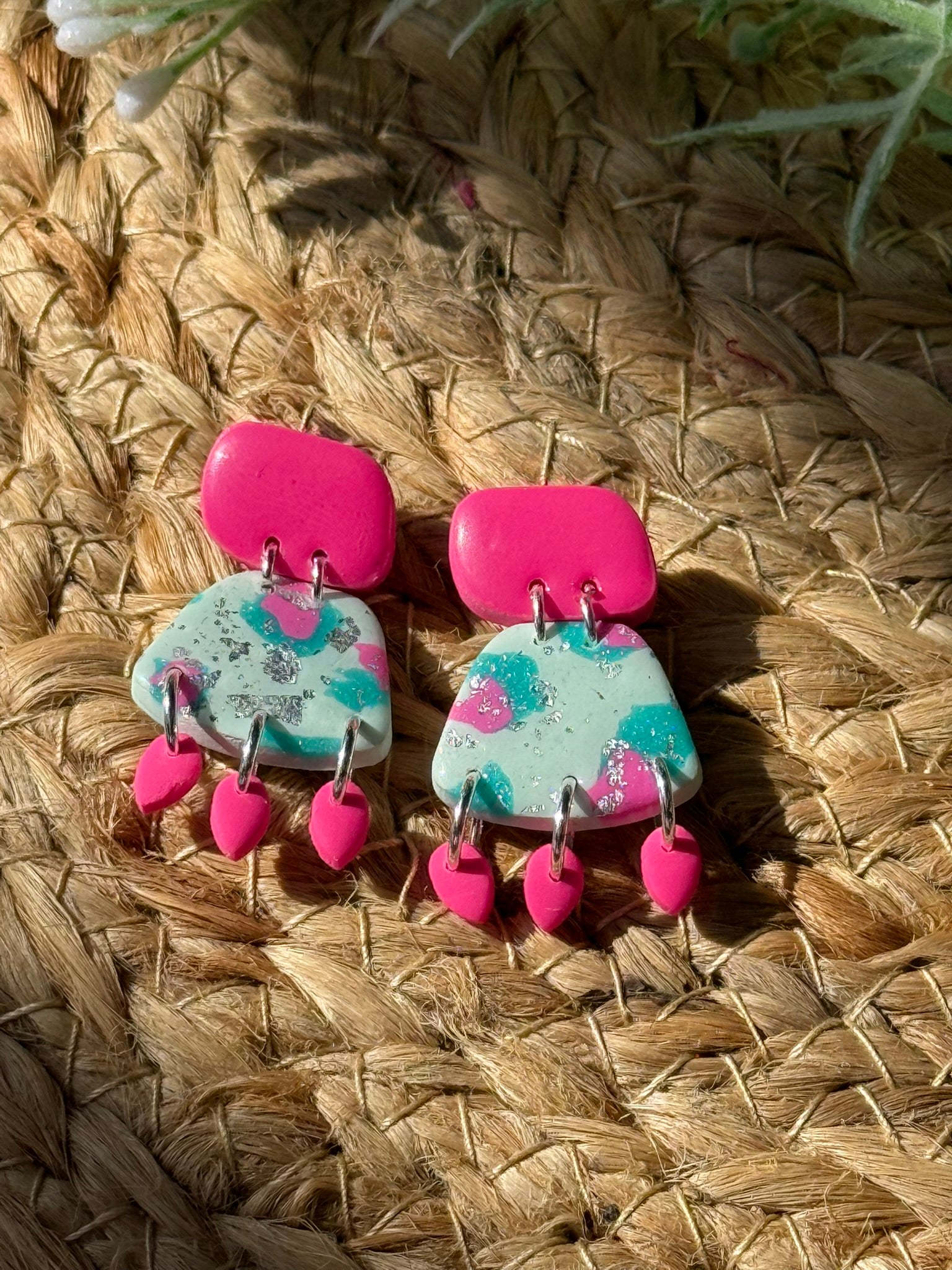 Polymer clay earrings, handmade, resin coating, surgical steel, hypoallergenic.