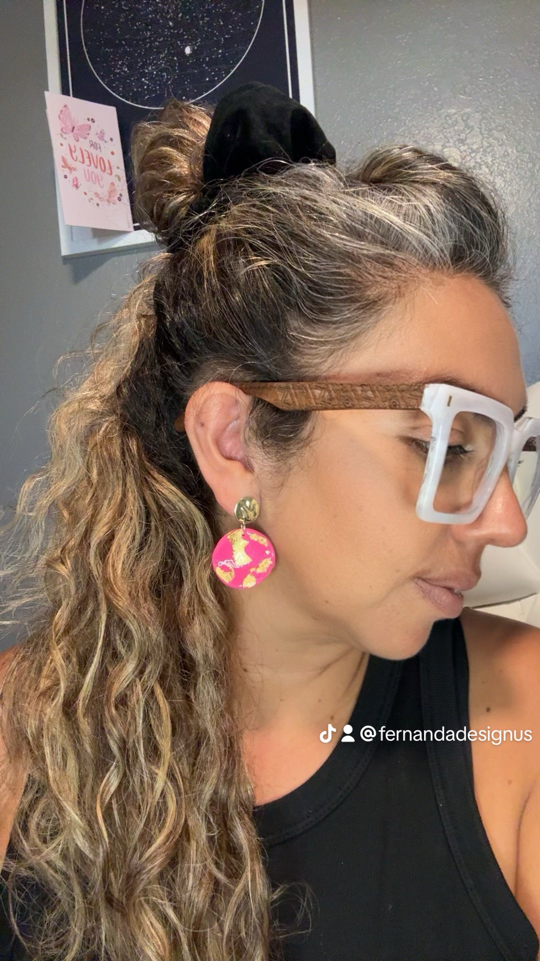 The Magenta Royale earrings radiate strength and sophistication. Inspired by contemporary elegance and the power of color, they blend a vibrant magenta hue with golden accents that evoke luxury and confidence. Their round, glossy design turns every movement into a statement of bold, effortless style.