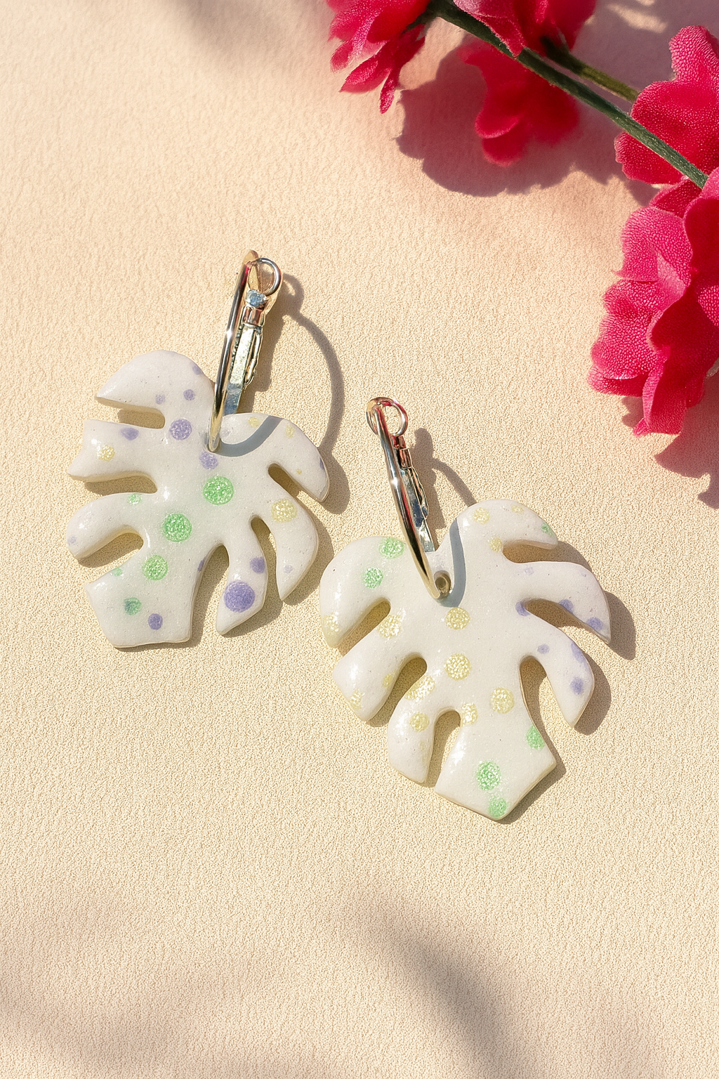 The Monstera Pop earrings reinterpret tropical beauty through a contemporary lens. Inspired by the iconic monstera leaf, their design blends natural forms with playful pops of color that evoke freshness, joy, and creative style. Each pair fuses organic elegance with a modern and artistic twist.