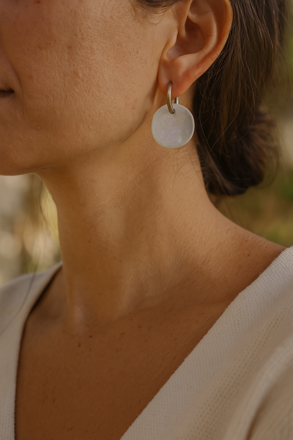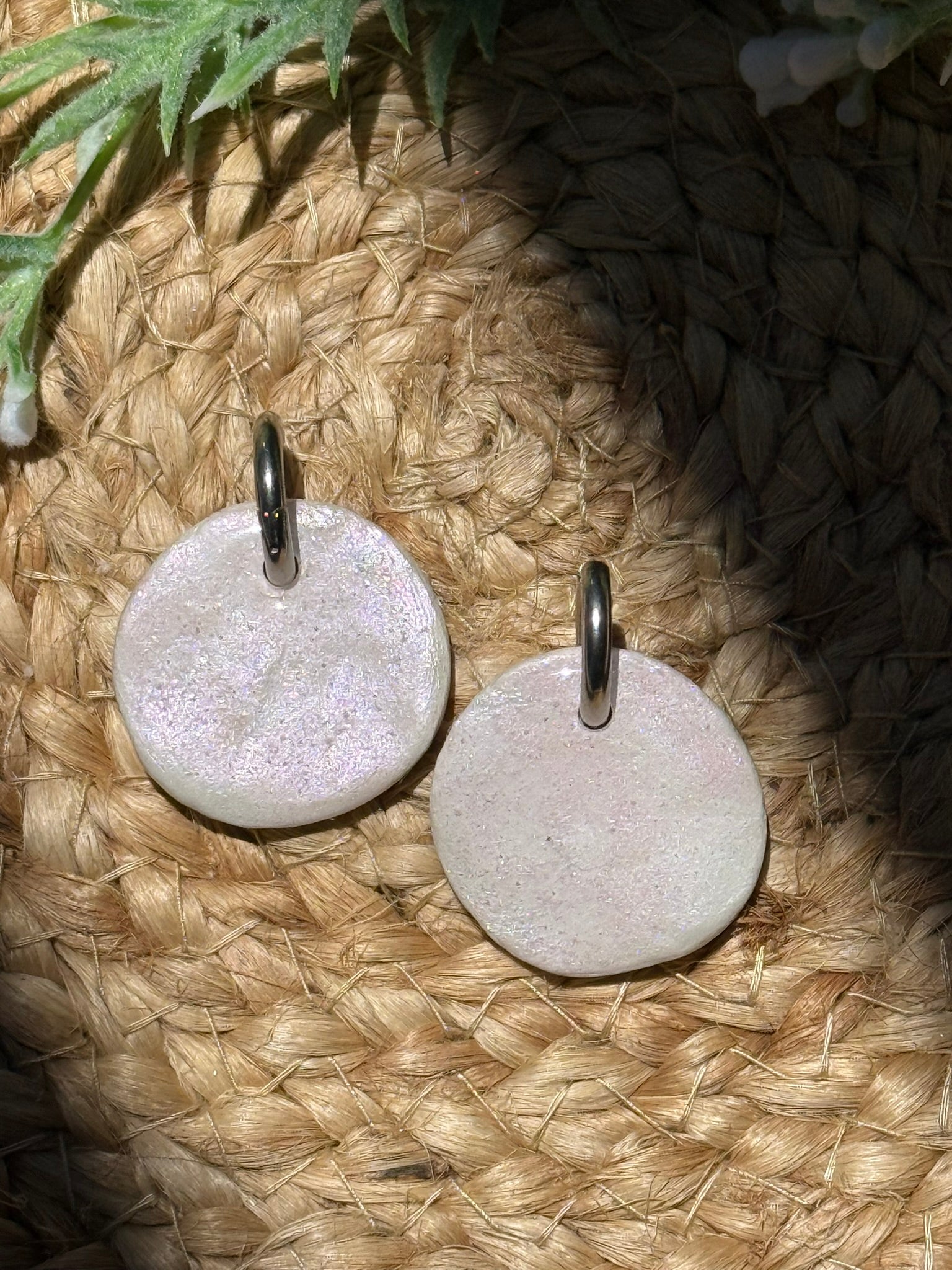 Clay earrings, handmade and hand painted, surgical steel rings, hypoallergenic.