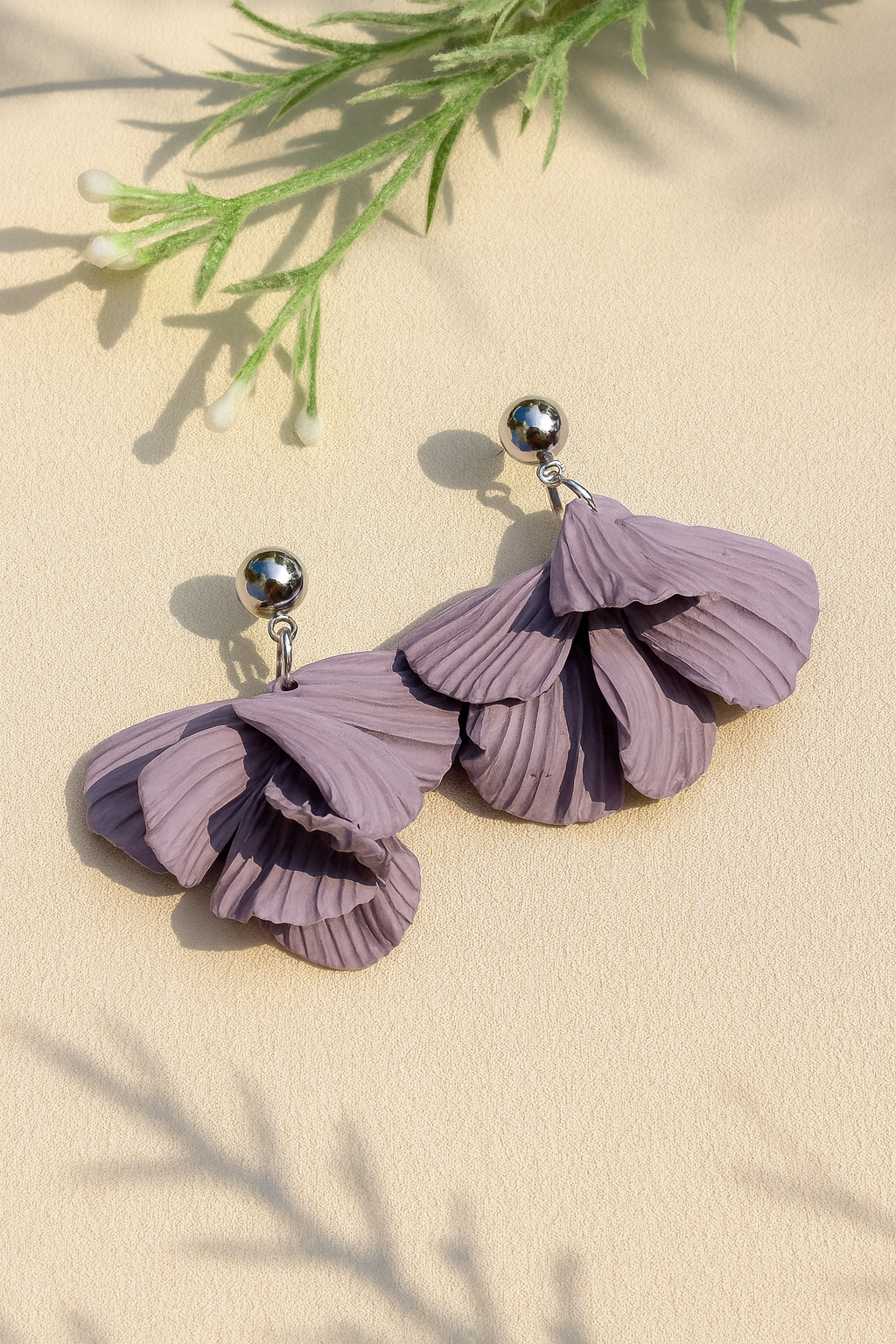 The Petalys earrings are a statement of design and delicacy. Inspired by the fluidity of nature, their layered, wavy structure and finely detailed texture evoke the gentle movement of petals in the wind. Each piece is hand-shaped to create volume, lightness, and balance — a modern design that enhances any look with artistic sophistication.