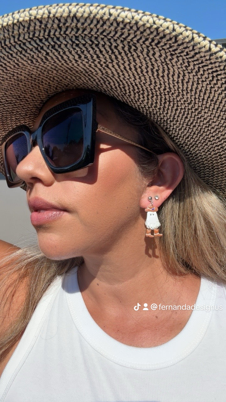 Meet the Cowboo β a little ghost with a cowboy heart. Each piece is sculpted by hand, wearing its tiny hat and boots with pride. Made from durable polymer clay, these earrings are feather-light yet full of personality β ready to ride along wherever your adventures take you. π€ π»