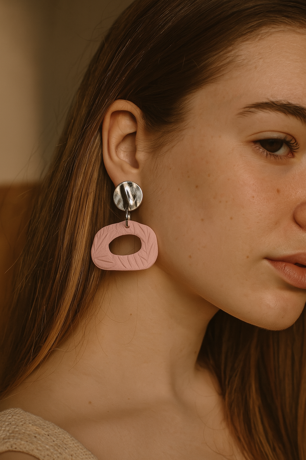 Polymer clay earrings, handmade. Surgical steel earring and ring, hypoallergenic.