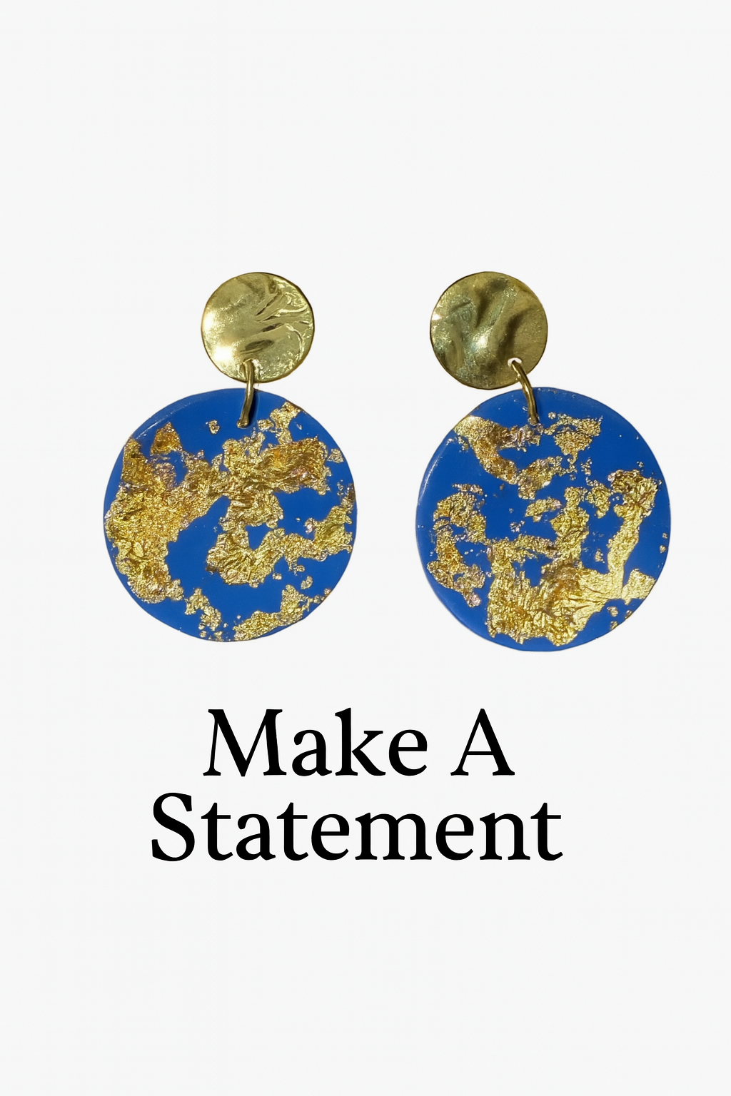 Polymer clay earrings, handmade with gold foil details. Surgical steel hoop and earring, gold plated, hypoallergenic and resin coated.
