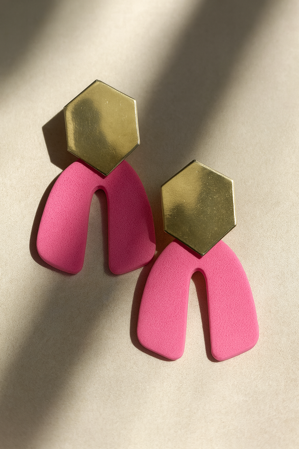 The Vetra Earrings are a statement of modernity—bold geometry, striking contrasts, and an artistic touch that turns the everyday into something unique. Each piece is hand-shaped and polished using polymer clay, a lightweight, durable, and versatile material that allows for precise forms and vibrant colors while ensuring comfort.