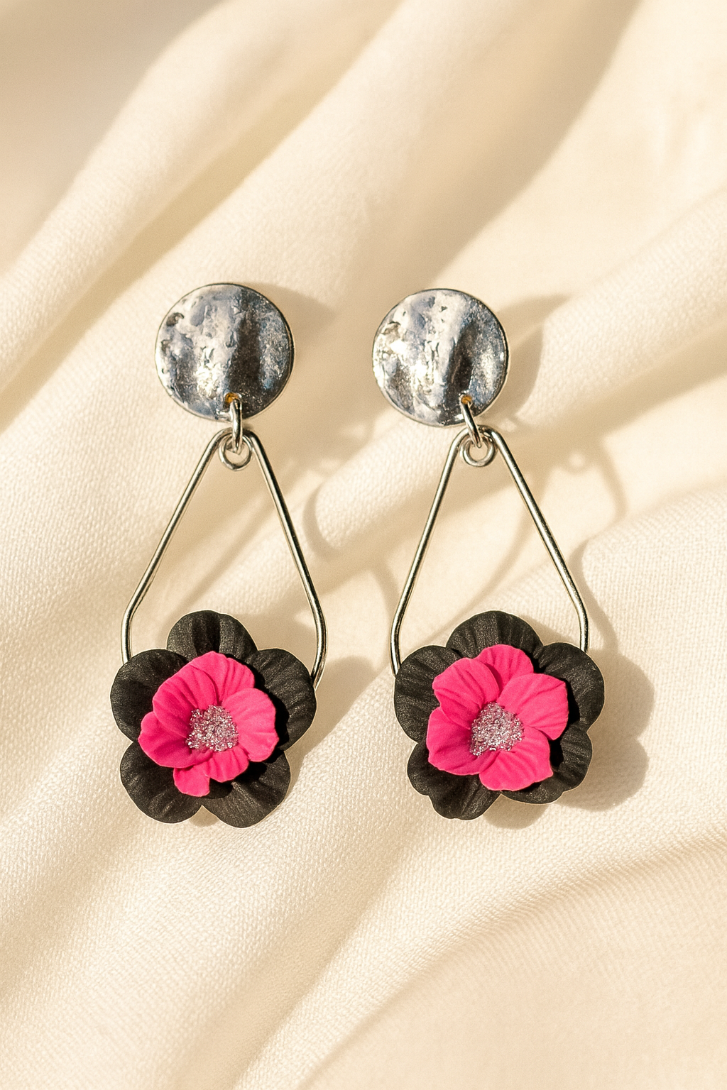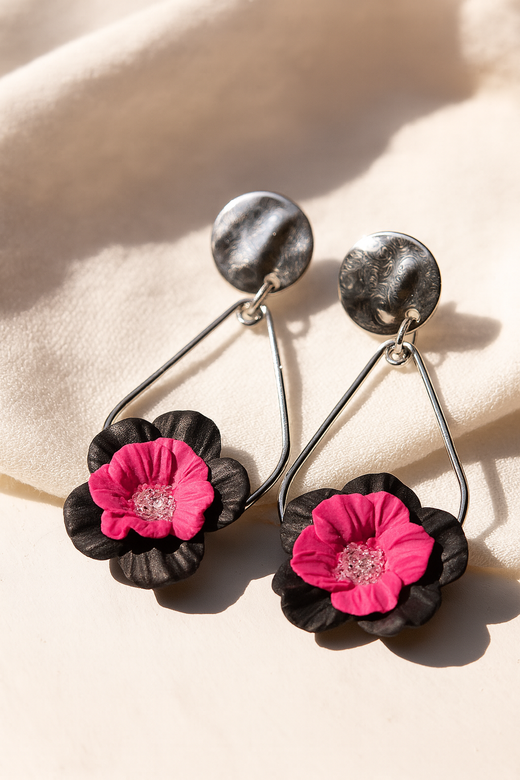 The Wild Romance earrings blend modern sophistication with the natural strength of flowers. Their contrast of black petals and pink centers creates an elegant, bold, and unique piece — perfect for those who love to stand out with their own sense of style.
