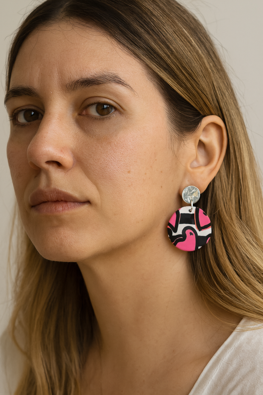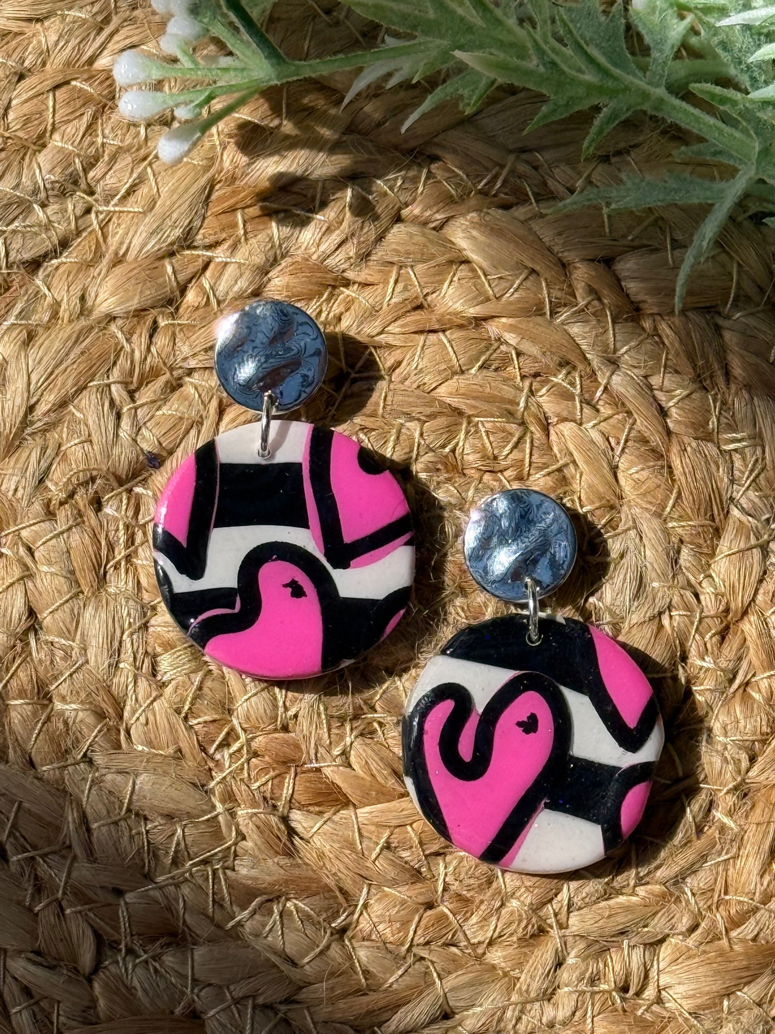 Handmade polymer clay earrings, resin coating. Surgical steel rings, hypoallergenic.